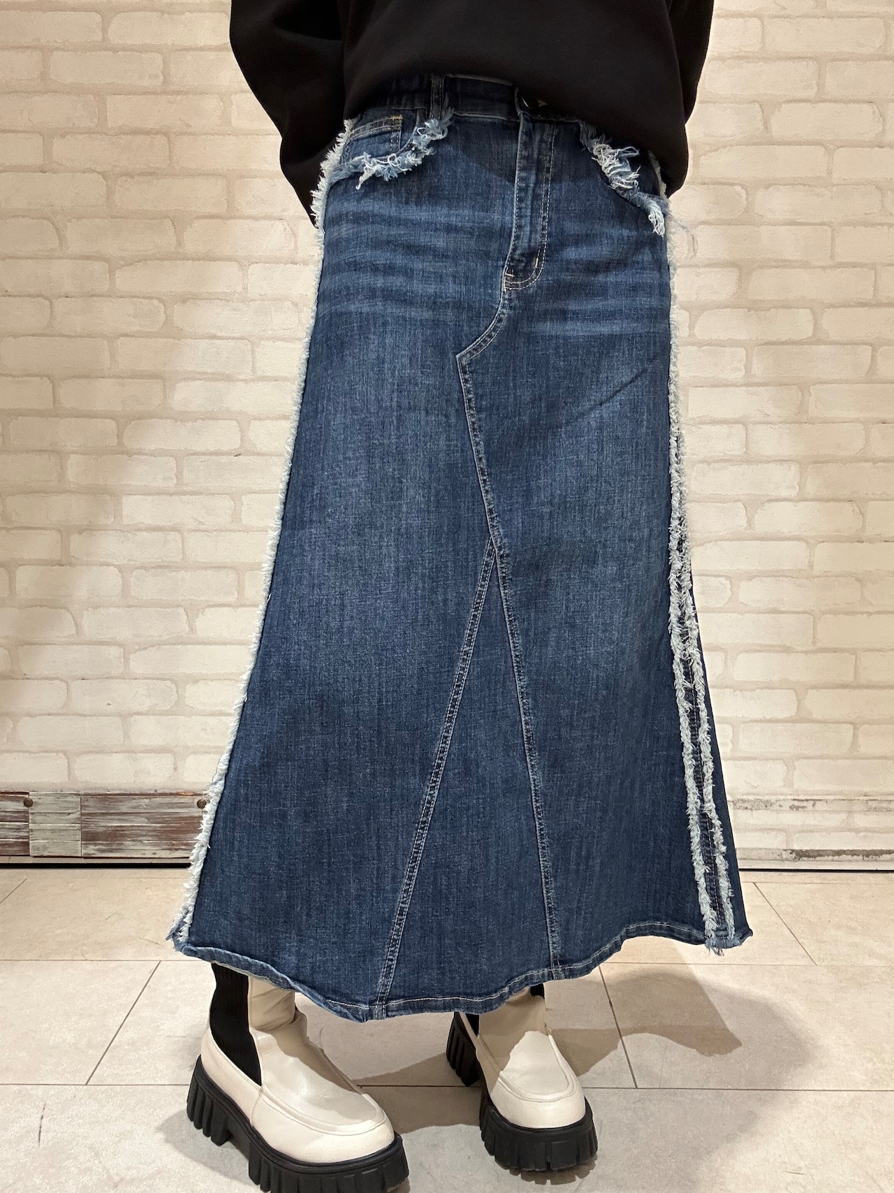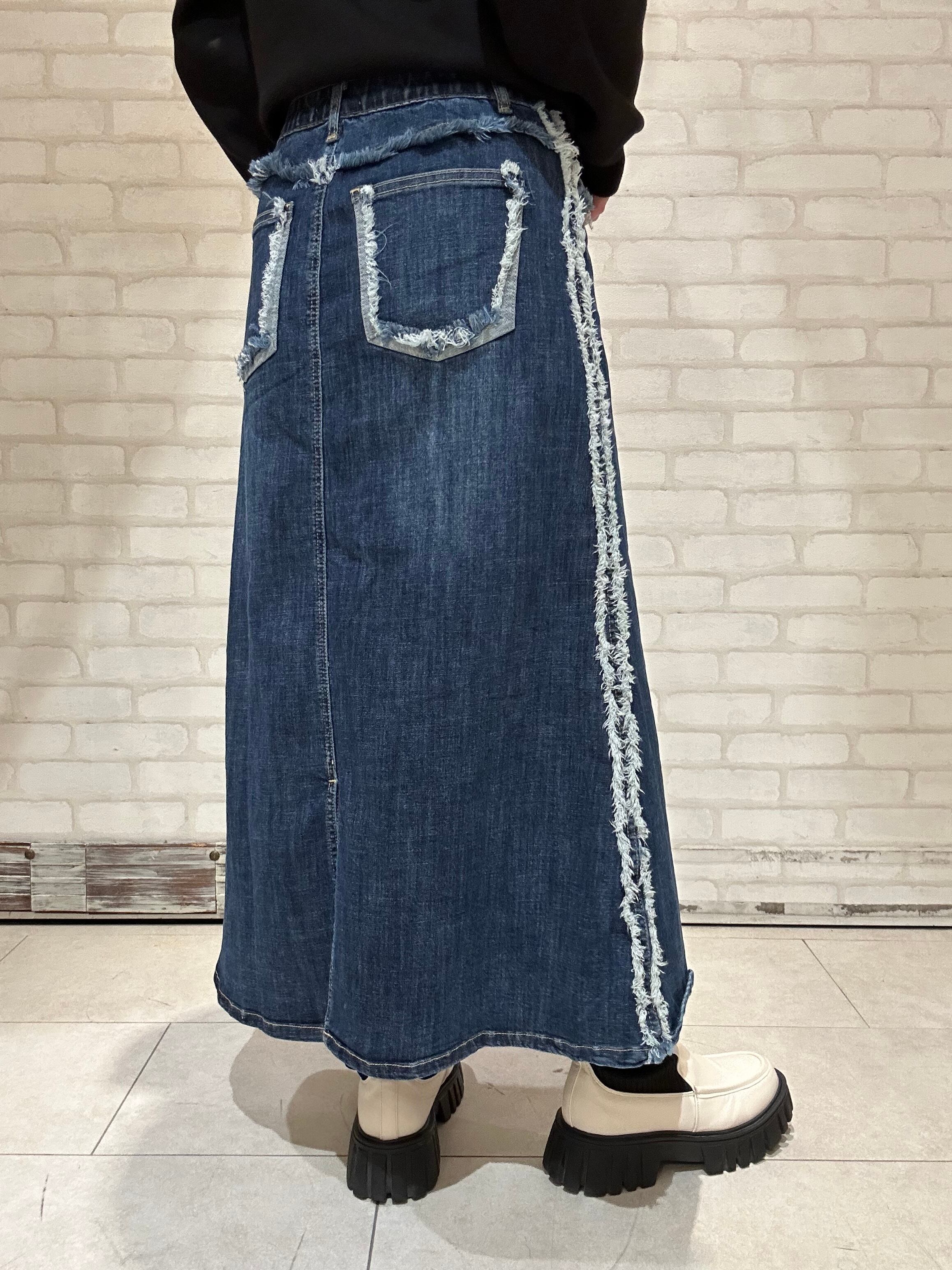 サイドやウエスト周りのフリンジ使いがお洒落なINDIMARKの新作スカート。